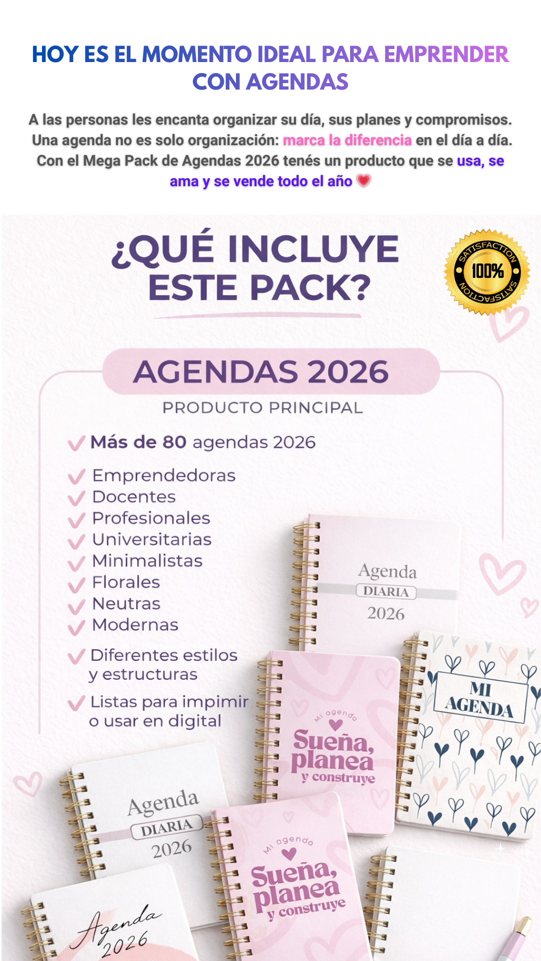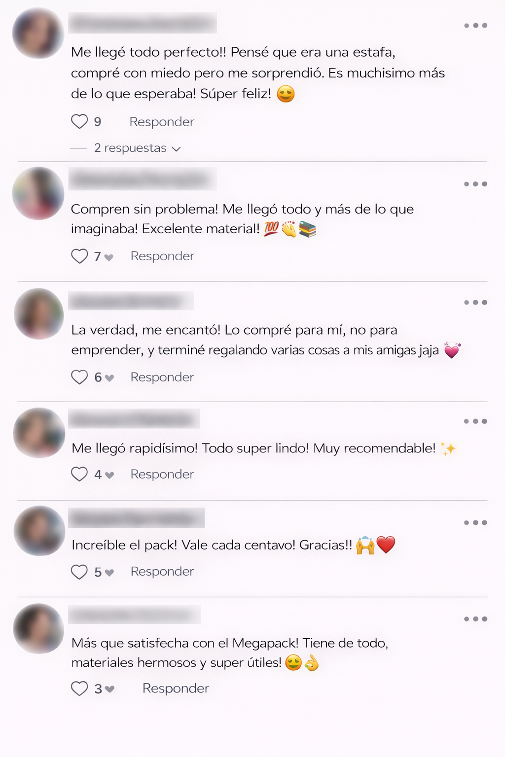 “El pack es una locura. Empecé a vender agendas digitales sin saber diseñar y ya recuperé la inversión. Todo está listo y es hermoso.”
